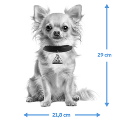 Der Hund ist 29 cm hoch und 21,8 cm breit. (Plus einen halben Zentimeter transparente Folie drumherum.)