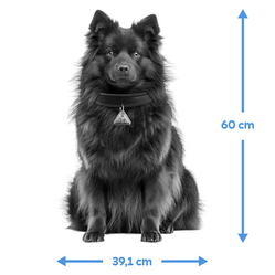 Der Hund ist 60 cm hoch und 39,1 cm breit. (Plus einen halben Zentimeter transparente Folie drumherum.)